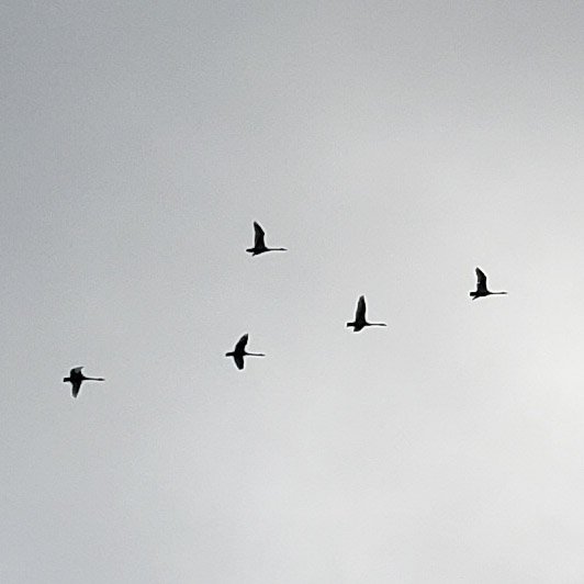 I noticed these swans flying overhead and managed to get my smartphone out fast enough to get a couple of pictures: